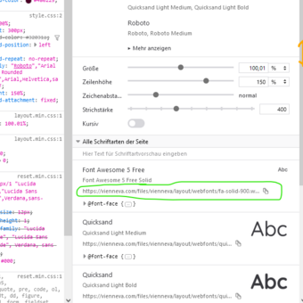 Es gibt noch weitere externe Domains, über die Schriften geladen werden z.B. https://use.fontawesome.com für die Fontawesome Icons. Diese Domains sind weniger kritisch, weil man bei ihnen keine Nutzung oder Auswertung dier IP befürchtet. Allerdings ist es ratsam auch hier darauf umzusteigen, diese Fonts vom eigenen Server zu laden.