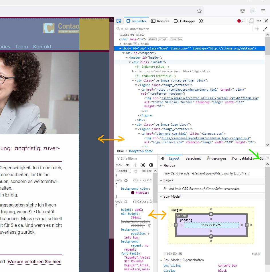 Verschiebe jetzt die Fenster, damit Du gut sehen kannst, welche Schriftarten Deine Website nutzt gibt. Du kannst dort auch scrollen.