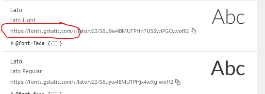 (Genaugenommen ist es nicht ganz eindeutig. Denn wenn Du auf Deinem Computer Google-Fonts liegen hast, könnte es sein, dass sie von dort kommen, bei anderen Besuchern aber über Google geladen werden. Das passiert aber in der Regel nur bei Webdesigner*innen, die lokal mit Webfonts arbeiten.) - Findest Du einen Link zu einer Domain, der mit Deinem Domainnamen beginnt, ist alles gut: der Font liegt auf Deinem Webspace und wird von dort geladen.